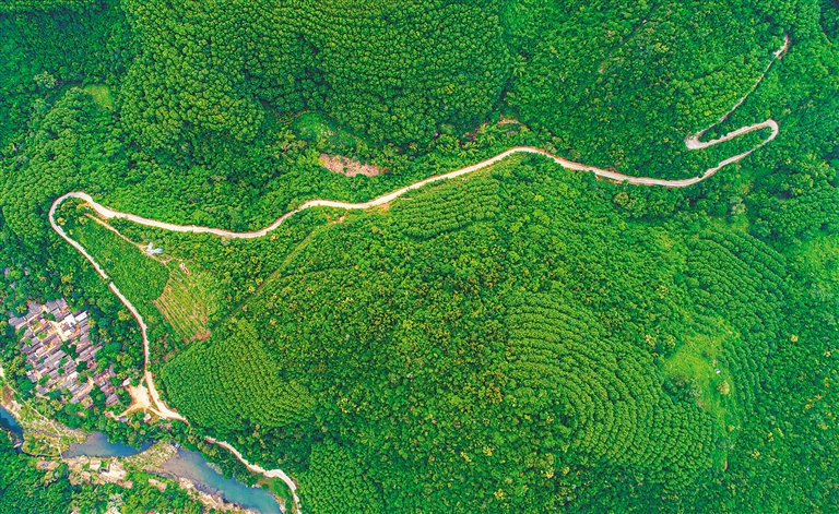 12月10日,俯瞰昌江黎族自治县王下乡的美丽农村公路,“四好农村路”正在我省高质量发展。
