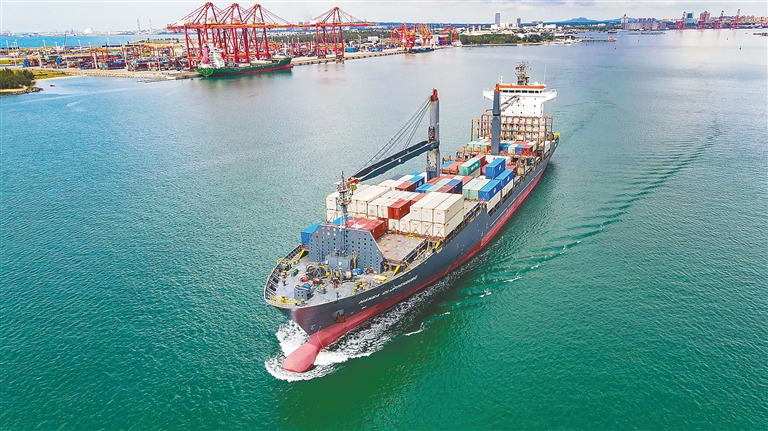 图①2020年9月28日,洋浦-南太-澳洲集装箱航线在洋浦小铲滩码头正式开通运营,标志着海南自贸港首条洲际航线开通启航。海南日报记者 陈元才 摄