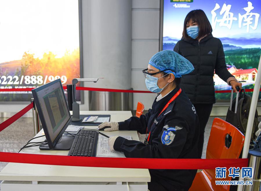 1月11日,在海南海口,新海港安保人员登记入岛旅客信息。新华社记者 周佳谊 摄
