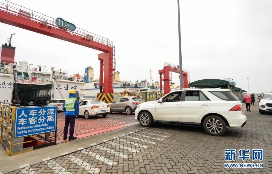 1月11日,在海南海口新海港,车辆排队等候登船。新华社记者 周佳谊 摄