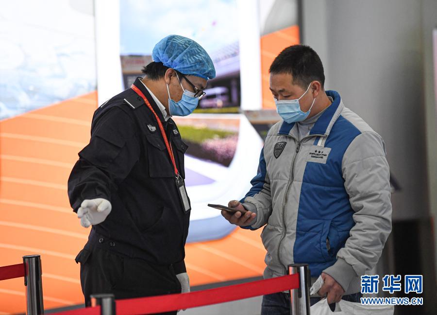 1月11日,一名抵达海口美兰国际机场的旅客向工作人员出示通信大数据行程卡。近期,随着天气转冷,进入海南过冬的群众逐渐增多。海口机场、港口等对入岛旅客采取测量体温、查验旅客信息等措施,加强疫情防控。新华社记者 蒲晓旭 摄