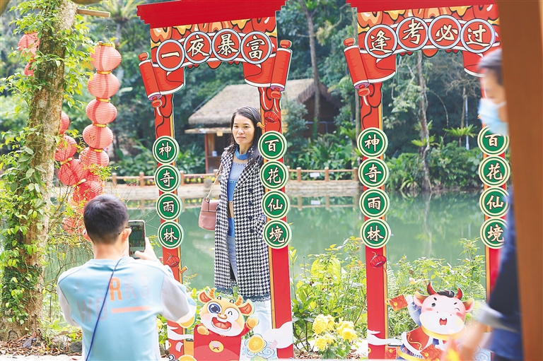 春节期间,海南百花岭热带雨林文化旅游区成游客热门打卡地
