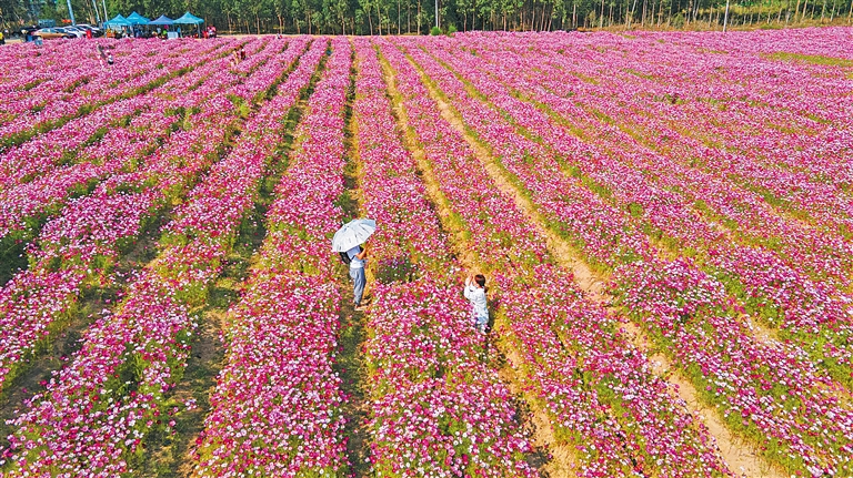 2月23日,昌江黎族自治县红林农场十二队花卉基地,游客在花海中拍照。 海南日报记者 陈元才 通讯员 杨耀科 摄