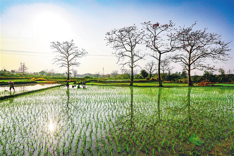 春风送暖花千树,春雨如酥润新田。看海南,好一派生机盎然。西部市县农民弯腰在田中插秧,重点园区项目工地满负荷施工,省内各大免税店人流如织……从城市到农村,从港口到景区,从工人到农民,每一名自贸港建设者都在追赶春天的脚步、奏响春天的乐章。
