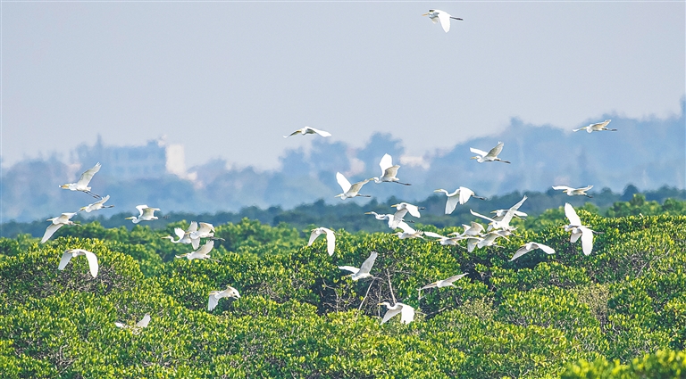 1月16日,海南东寨港国家级自然保护区下塘湿地,白鹭竞飞。海南日报记者 袁琛 摄