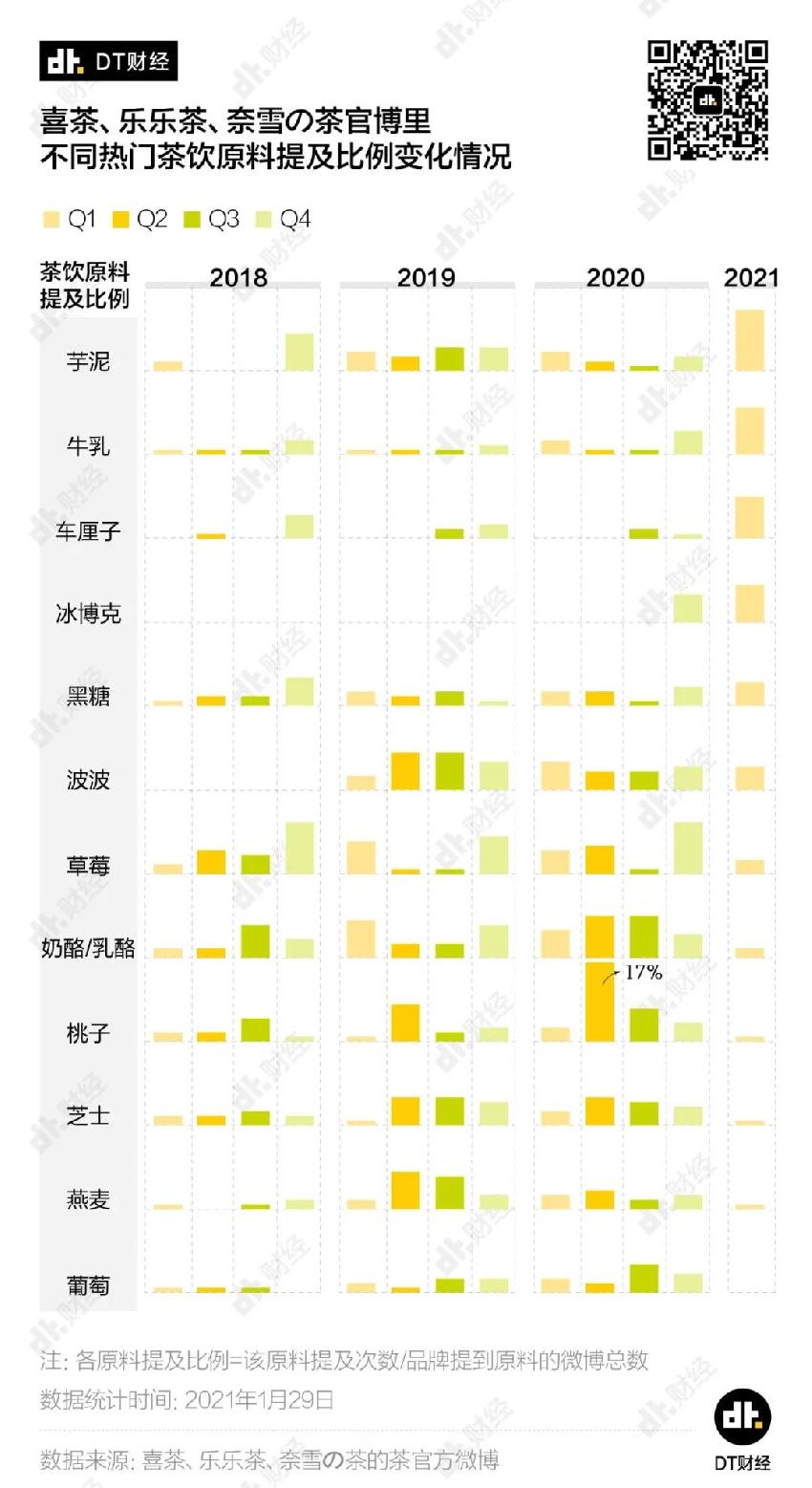 DT君采集了三家奶茶品牌的官博,将它们在微博中提及的热门奶茶元素按照时间进行了梳理,发现了一些有意思的变化。