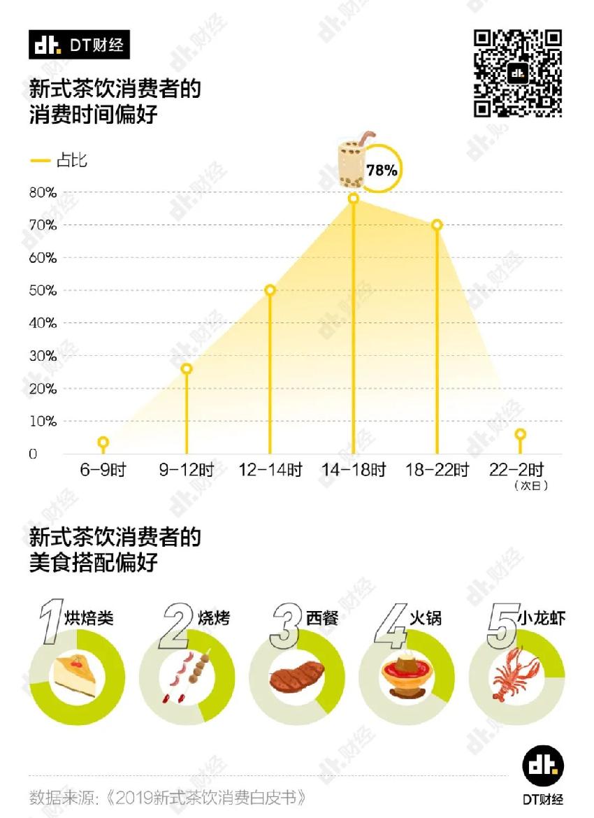 但与此同时,消费者更爱在下午和夜间点奶茶,再加上一份烘焙类食品,比如欧包、甜品,效果更佳。此外,配餐选择烧烤、火锅和小龙虾的用户也分别达到了44%、34%和25%。