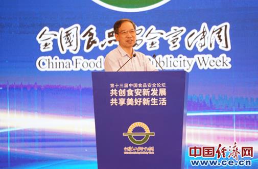 由国务院食品安全办指导,经济日报社主办,中国经济网承办,主题为“共创食安新发展共享美好新生活”的第十三届中国食品安全论坛8月29日在京举办。图为中国疾控中心营养与健康所所长丁钢强发言。中国经济网记者裴小阁/摄