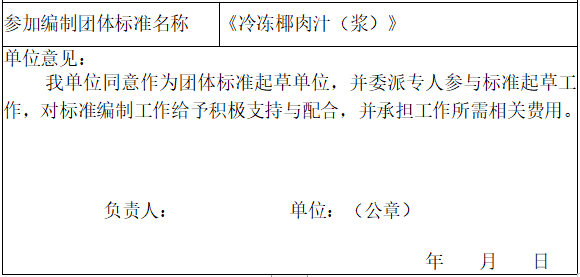 关于征集《冷冻椰肉汁(浆)》团体标准 起草单位和起草人的通知