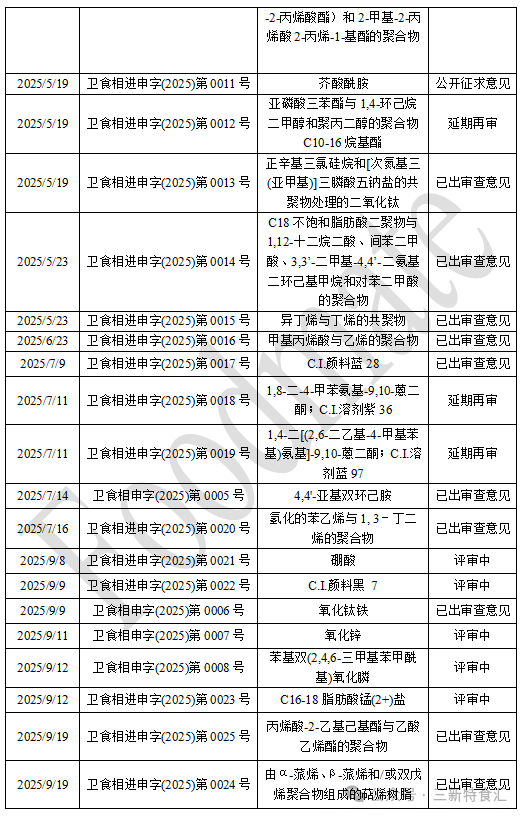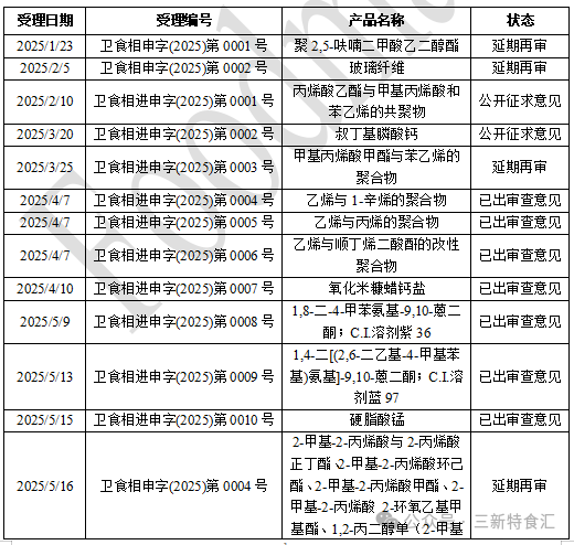 表2 2025年食品相关产品新品种公开征求意见情况