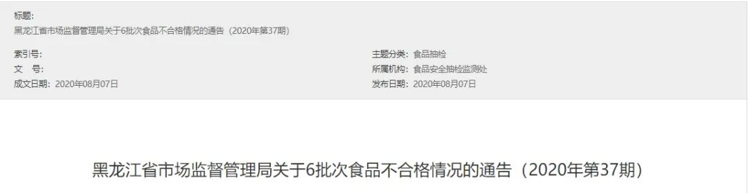 近日,黑龙江省市场监督管理局网站发布关于6批次食品不合格情况的通告(2020年第37期)。据通告,近期,黑龙江省市场监管局组织对16大类836批次食品及食用农产品开展了评价性抽检。根据食品安全国家标准检验和判定,不合格样品6批次,发现的主要问题是微生物污染、农药残留、食品添加剂超限量使用、质量指标不达标。其中,2批次糕点抽检不合格。