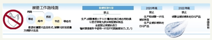 在2019《方案》的基础上,《补充实施方案》新增了有关禁止部分塑料制品的生产、销售和使用的内容,其中包括:禁止生产、销售厚度小于0.01毫米的聚乙烯农用地膜;禁止以医疗废物为原料制造塑料制品;全面禁止废塑料进口;禁止餐饮堂食服务中使用一次性不可降解塑料刀、叉、勺,不包括预包装食品使用的一次性塑料餐具;到2020年底,禁止生产和销售一次性塑料棉签;禁止生产含塑料微珠的日化产品;到2022年底,禁止销售含塑料微珠的日化产品。全省范围所有宾馆、酒店、民宿等场所不再主动提供一次性塑料用品,可提供自助购买机、续充型洗洁剂等相关服务。