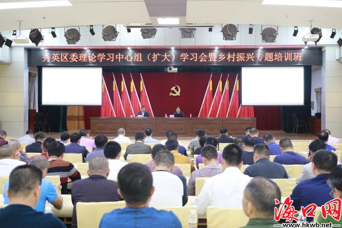 (海口网记者刘杰 特约记者陈创淼)25日上午,海口秀英区举办区委理论学习中心组(扩大)学习会暨乡村振兴专题培训班,全力做好巩固拓展脱贫攻坚成果同乡村振兴有效衔接工作,动员全区各级各部门积极参与乡村振兴,统筹实施乡村振兴战略,推进农业农村现代化。
