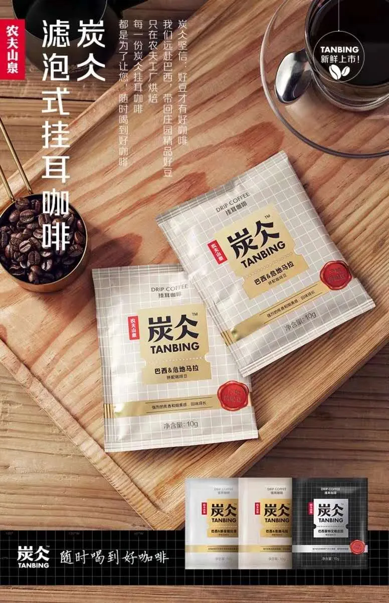 连锁咖啡厅、餐饮咖啡受疫情影响较大,敏锐的农夫山泉瞄准了机会,推出了预包装现磨咖啡产品——炭仌滤泡式挂耳咖啡。这是农夫山泉继去年5月推出炭仌碳酸咖啡、10月推出炭仌新系列RTD咖啡之后,推出的第三款咖啡产品。