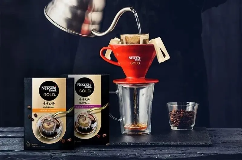 目前,炭仌挂耳咖啡已在农夫山泉线上旗舰店开售。可以看到,炭仌挂耳咖啡的包装风格与农夫山泉去年10月推出的炭仌即饮咖啡风格一致,产品口味也一一对应。在价格方面,炭仌挂耳咖啡每盒含10小包,活动期售价45元/盒,天猫给出的参考售价为74元/盒。截至目前仍在新品预售阶段。相对于竞争激烈的即饮咖啡赛道,目前国内生产挂耳咖啡的竞争者并不多。但速溶咖啡老大雀巢在去年年底就推出了“手冲大师”挂耳咖啡系列,无疑是农夫山泉强有力的竞争者。