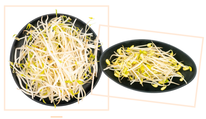 豆芽是以黄豆或绿豆等豆类为原料,经水浸泡发芽后得到的蔬菜制品。市面上常见的有黄豆芽和绿豆芽,也偶见黑豆芽、豌豆芽。发芽制备方法相对简单,豆子泡发成豆芽过程中可释放出更多的营养素。消费者在家中就能制作,步骤如下: