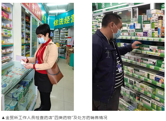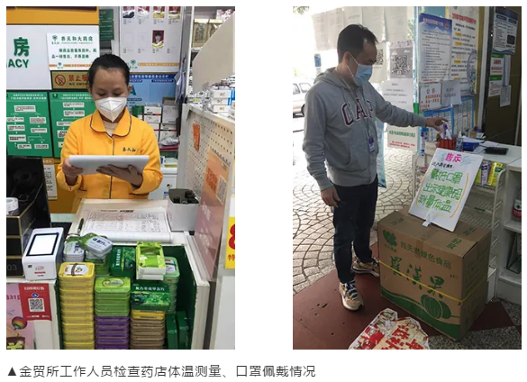 工作人员重点对辖区药店顾客进店体温测量及口罩佩戴情况,从业人员口罩佩戴情况,止咳药、退烧药、抗病毒、抗生素等四类药物销售情况以及口罩、消毒剂等重要疫情防控产品明码标价情况进行检查,对防控措施落实不到位的药店当场督促整改。