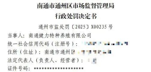 1月20日,记者从国家企业信用信息公示系统(江苏)网站了解到,南通健力特种养殖有限公司因将列入保健食品原料目录的原料用于其他食品生产被南通市通州区市场监管局处罚。