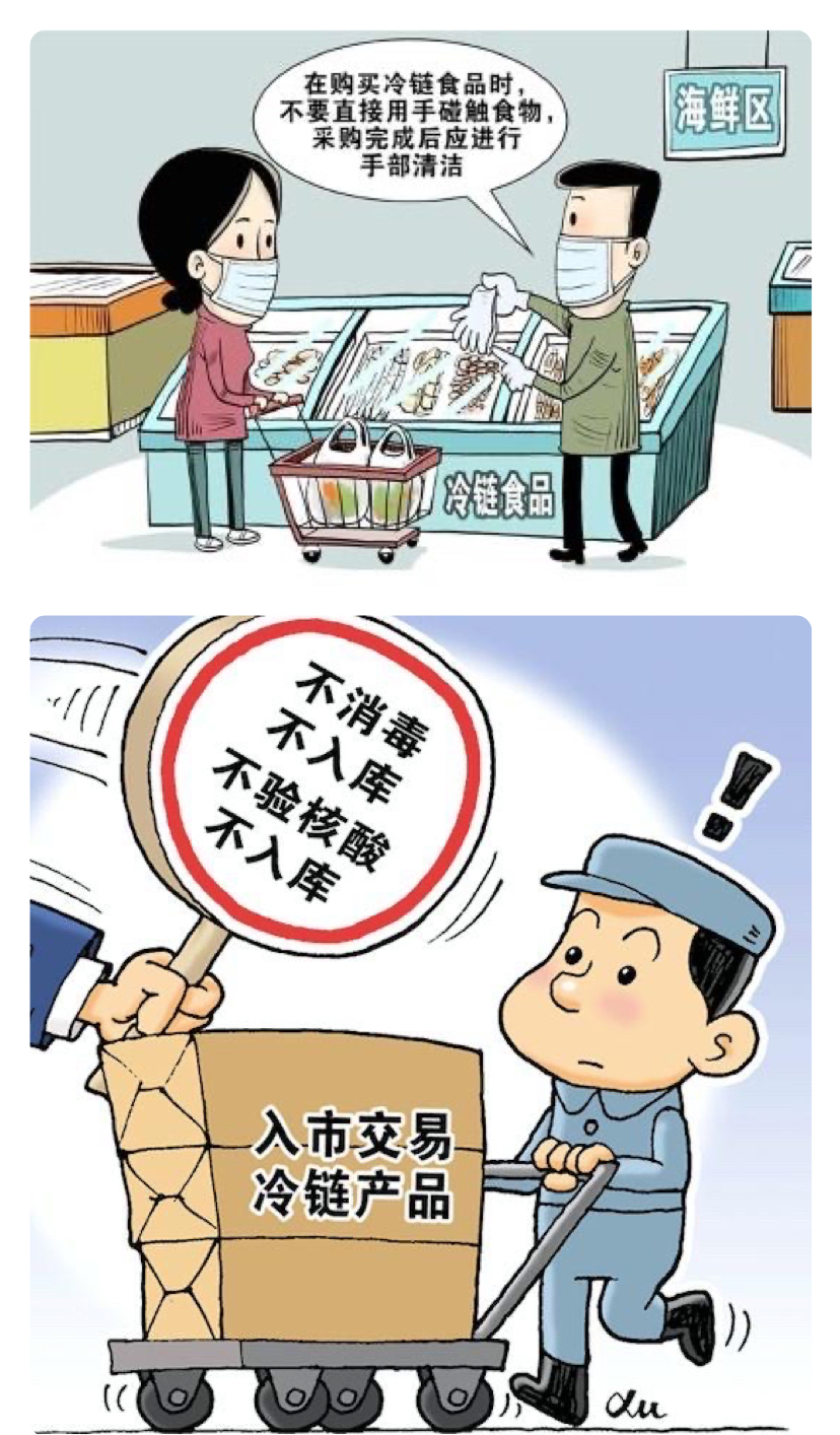 近期,国内多地接连出现进口冷链食品包装物检出新冠病毒阳性样品,疫情传播呈现“人传人”和“物传人”并存的新特征,通过进口冷链食品输入疫情的风险明显加大。消费者在选购时应仔细查看进口冷链食品检验检疫合格证明、核酸检测报告、消毒证明、报关单等“四证”是否齐全,使用一次性塑料袋反套住手后挑选冷链食品,避免用手直接接触,同时正确佩戴口罩。关注生产日期、保质期、储存条件等食品标签内容,保证食品在保质期内。购物后及时用肥皂或洗手液清洗双手,洗手前双手不碰触口、鼻、眼等部位。