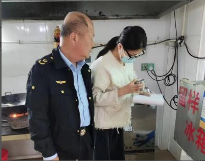 检查组首先针对辖区内学校(幼儿园)食堂开展检查,先后共查看了七个食堂,听取食堂安全负责人关于“两个责任”的落实情况、督促其针对《学校食堂等餐饮服务经营单位食品安全检查表》进行自查,随后检查组实地查看了场所的环境卫生,对调味料是否存在过期情况及进货台账、食品加工流程、餐具清洗消毒是否到位等进行检查。检查组还重点查看了留样冰箱、留样时间、留样重量等是否符合规范,并对检查过程中出现的问题提出整改建议。