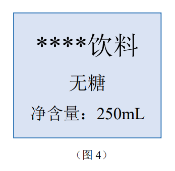 标示示例:见图4,营养声称“无糖”的字高不超过食品名称“****饮料”的字高。