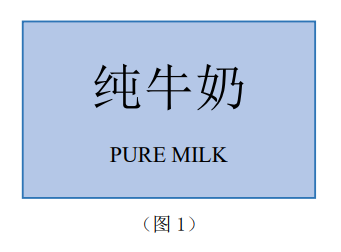 标示示例:见图1,外文“PUREMILK”的字高小于对应中文“纯牛奶”的字高。