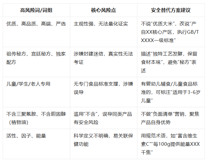 严禁使用无法客观验证的绝对化表述,以及虚构或滥用国家机关、专家等名义进行背书,这直接违反《广告法》与《食品安全法》。