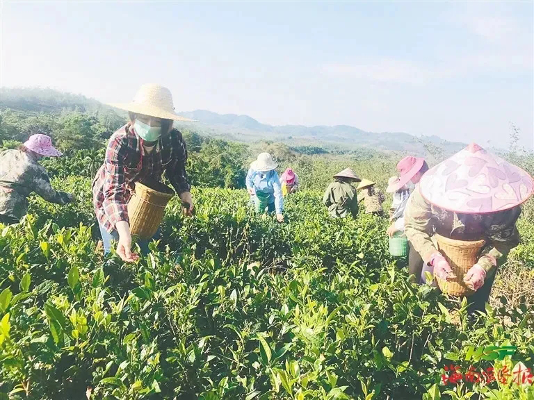 茶工在采摘春茶。海南母瑞山茶业有限公司供图
