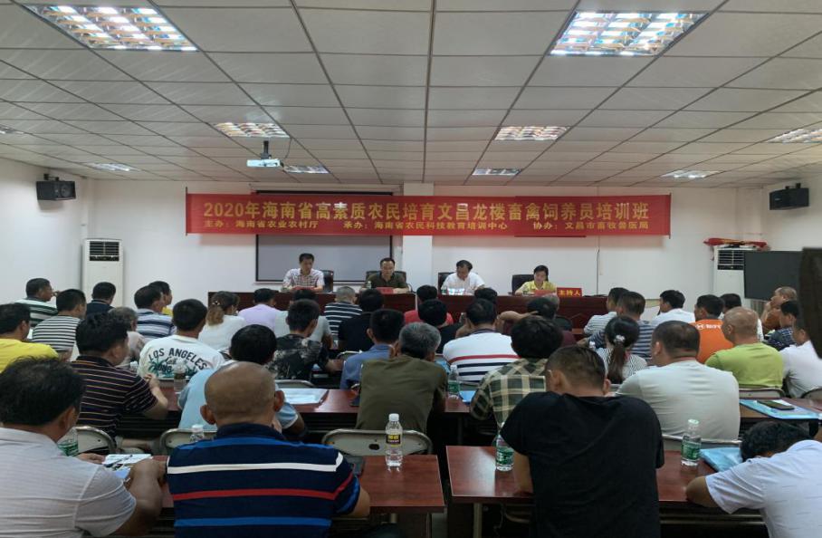 根据海南省农业农村厅、财政厅关于2020年高素质农民培育项目工作部署,结合近期我省“扩种养促务工增收”有关文件精神,海南省农民科技教育培训中心高素质农民培育畜禽饲养员培训班第一期于9月7日在文昌龙楼正式开班了。省农民科技教育培训中心副主任、文昌市畜牧兽医局副局长等出席了开班仪式。开班仪式上,省农民科技教育培训中心副主任对学员提出三点要求:一是统一思想,提高认识。二是高度重视,认真对待。三是珍惜机会,学以致用。文昌市畜牧兽医局副局长对为什么要办班,如何办好班,畜牧工作的重要性和动物免疫的紧迫性都做了充分的说明,提振了学员的学习积极性和参训热情。