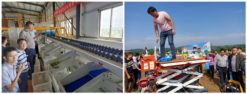 此次培训主要分为现场培训和理论培训两个环节。上午,参会人员到澄迈县福山镇福橙种植基地开展果园生产机械现场展示及作业观摩和交流活动。此次推广活动特别邀请了省内外十多家产销企业,参加现场展示和演示的果园机械包括:果园采收运输机械、植保机械、除草机械、修剪机械、灌溉机械、开沟机械、挖坑机械、果枝粉碎机械、水果分级清选机等,参展机械共计八十多种。通过实地作业演示和现场讲解、交流,使参会人员真正理解、体验到各种果园机械产品的先进性、实用性和使用效果。下午进行理论培训,授课内容为丘陵山区农机化发展现状及机械化解决方案、四化智慧果园-机械化信息化融合应用。