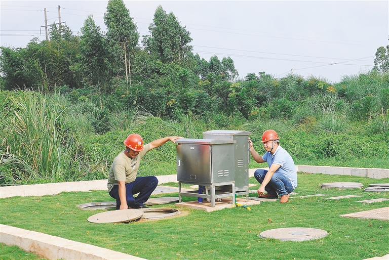 10月27日,工作人员正在澄迈县大丰镇大丰村检查一体化污水处理站运行情况。海南日报记者 苏晓杰 通讯员 王家专 图文