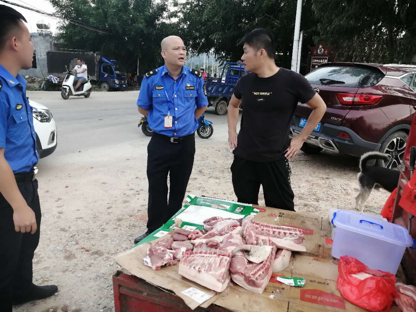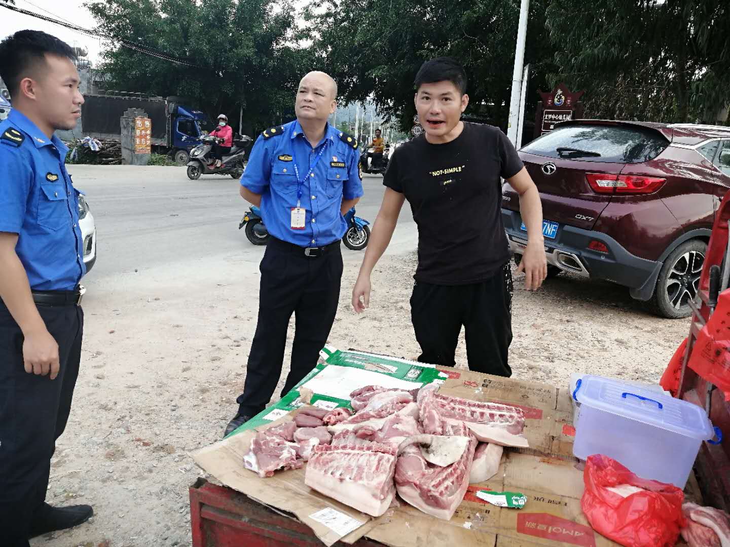 2020年10月23日,陵水县畜牧兽医局联合综合执法局农业执法大队,到文罗镇、群英乡、开展打击私屠滥宰行动。