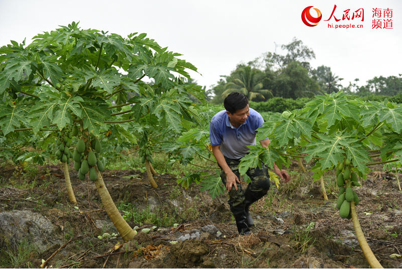 海南闹牛坡食品有限公司负责人何志明在木瓜种植基地