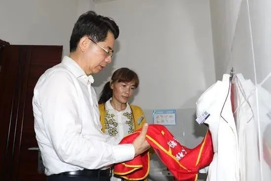 黄金城详细了解食堂各项规章管理制度(钟玉莹 摄)