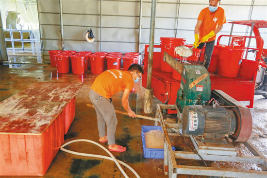 “你别看它个头小,食量却大得惊人。”海南禾生源生物科技有限公司总经理鲁东梁告诉海南日报记者,黑水虻寿命短暂,一个世代能活35天到45天,而从幼虫长成商品虫的8天到10天养殖周期内,体重将翻上千倍,“长得那么快,是因为它们24小时不停地进食,是名副其实的‘大胃王’,我们目前收集的餐厨垃圾还不够,还得购买一定量的动物饲料才能喂饱它们。”
