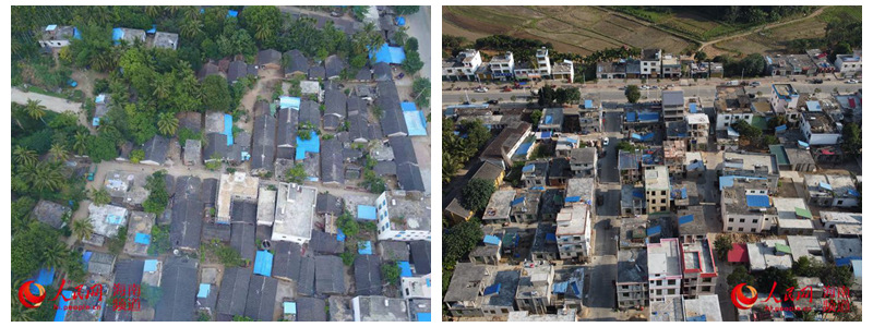 左为改造前的番阳村,右为改造后的番阳村,道路笔直宽敞。(受访人供图)