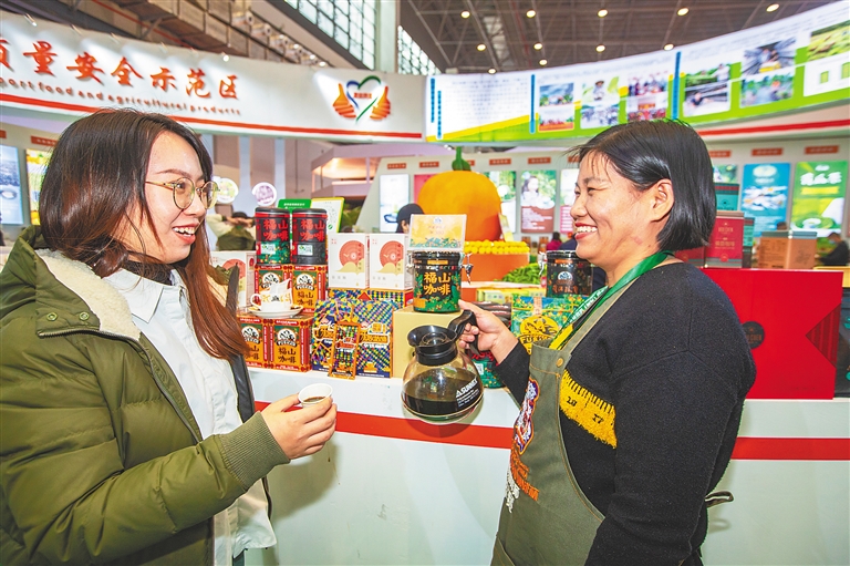 12月21日上午,与朋友邀约逛冬交会的北京游客李珊闻“香”走进澄迈馆,购买了咖啡等多种特色产品。