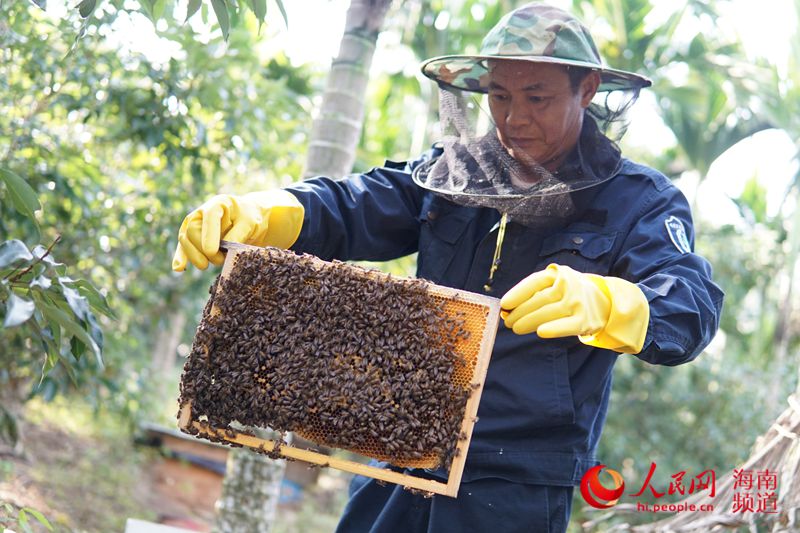 村民展示中华蜂养殖产业(人民网海南频道 樊欢迪摄)