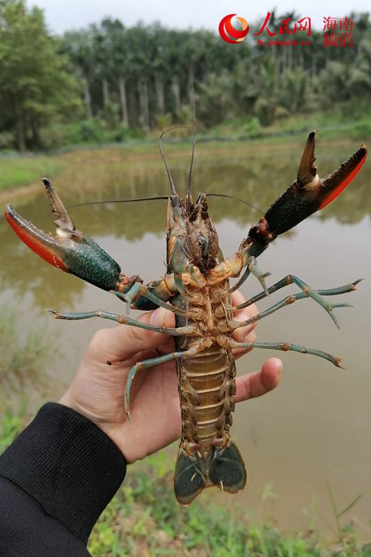 村里养殖的澳洲淡水小龙虾(人民网海南频道 樊欢迪摄)