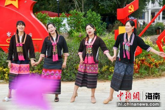 村民在西方村文化广场演唱黎族歌曲。凌楠 摄