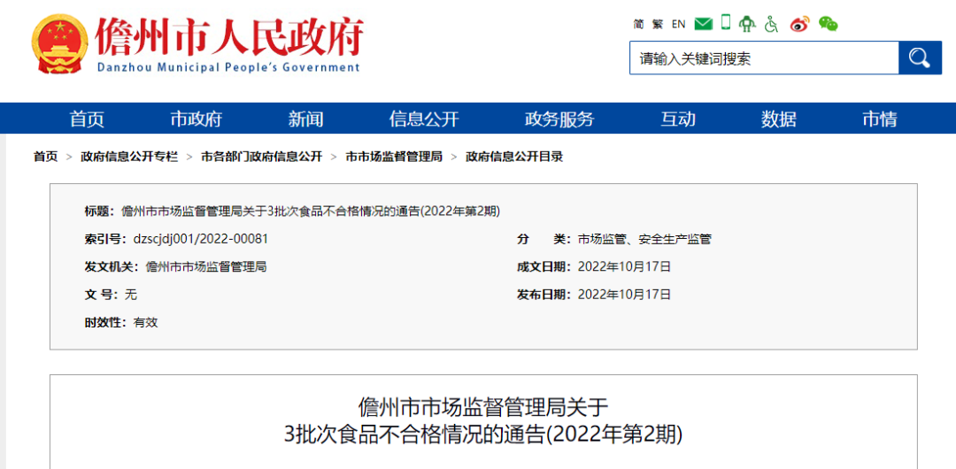 儋州市市场监督管理局关于3批次食品不合格情况的通告(2022年第2期)