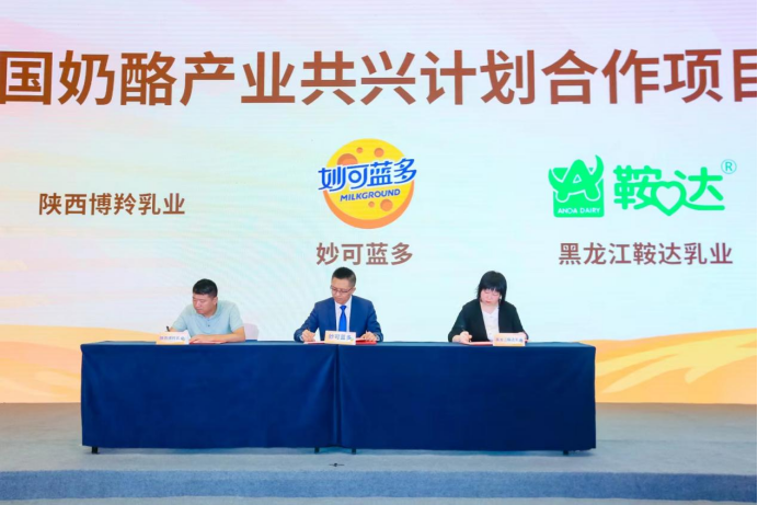 值得注意的是,本届奶酪高峰论坛上,妙可蓝多与陕西博羚乳业有限公司、黑龙江鞍达实业集团股份有限公司举行现场签约仪式。根据签约内容,妙可蓝多将借助自身品牌优势,技术优势、渠道优势等,通过多方面合作赋能,共同打造特色奶酪产品。