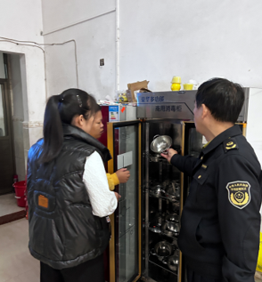 执法人员重点对校园食堂各个功能区的环境卫生、库存食品原辅料处置、进货查验、人员晨检及健康证明、食品留样、餐用具消毒记录、食品证照公示等情况进行检查。检查中发现个别学校存在餐用具消毒保洁不到位问题,执法人员对现场检查情况进行了记录并下达了限期整改通知书。
