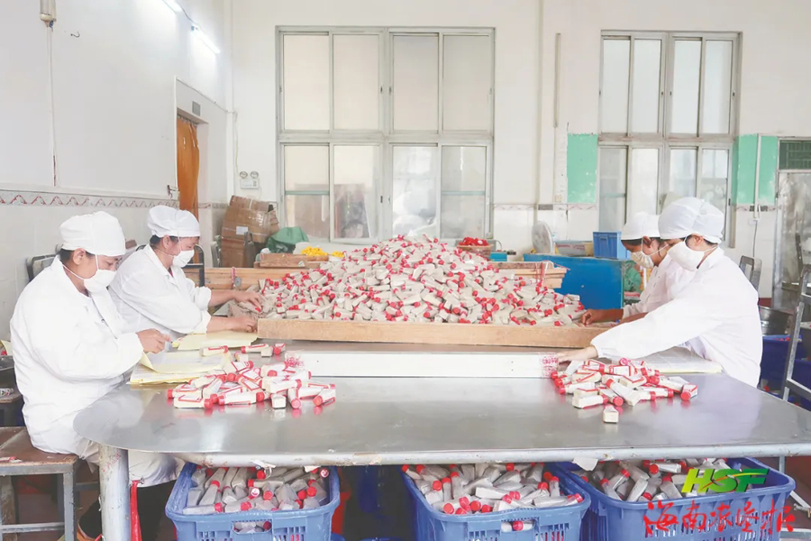 海垦东太农场公司飘仙食品有限公司工作人员正在包装胡椒粉。卢裕元 摄