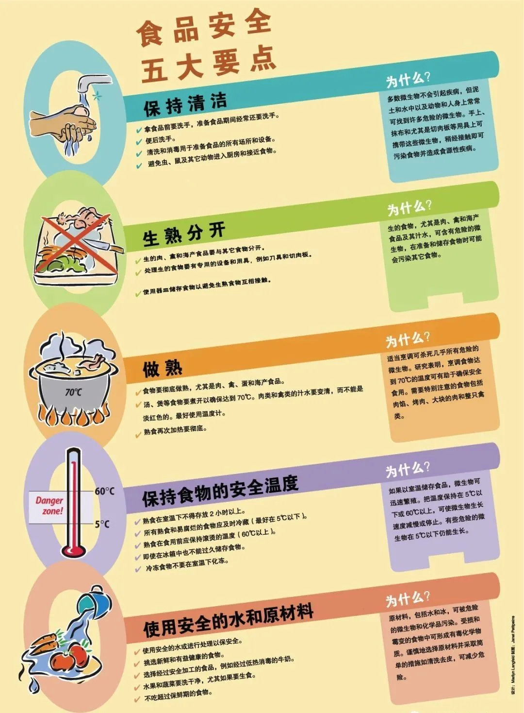 要选择新鲜干净食材,可适量储备耐贮存食材,尽量不购买、储存易腐变质的食材,避免接触活畜禽,远离野味。不采不食野生蘑菇,不使用药品(按照传统既是食品又是中药材的物质除外)加工制作餐食。在家做饭之前、期间和之后,都要用干净流动的水洗手,厨房用具用后要及时清洗或消毒;处理生食和熟食的用具或盛具要分开。加工食物时,要烧熟煮透。
